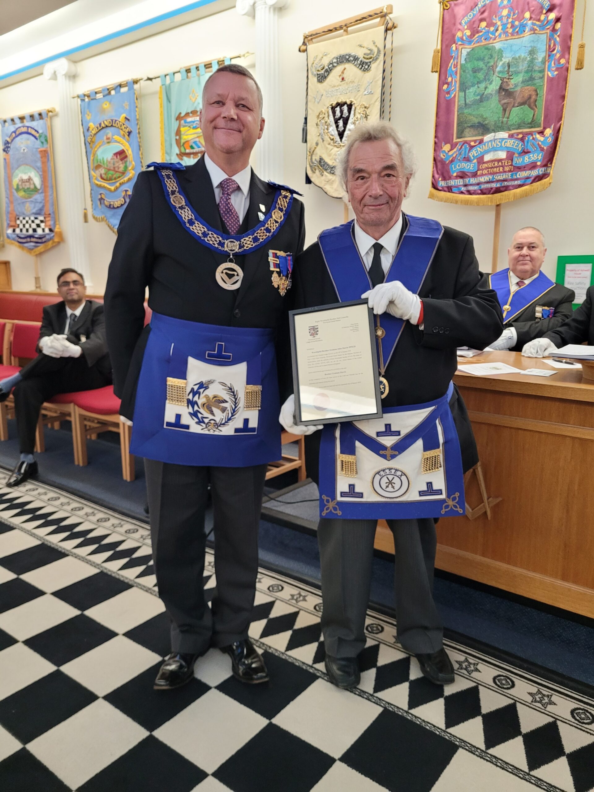 W Bro Graham Harris received a 50 year certificate from W Bro. Keith Dunnett PSGD - APGM. His presentation was fantastic covering Graham’s Masonic History and a number of items relating to his Domestic and Business History.